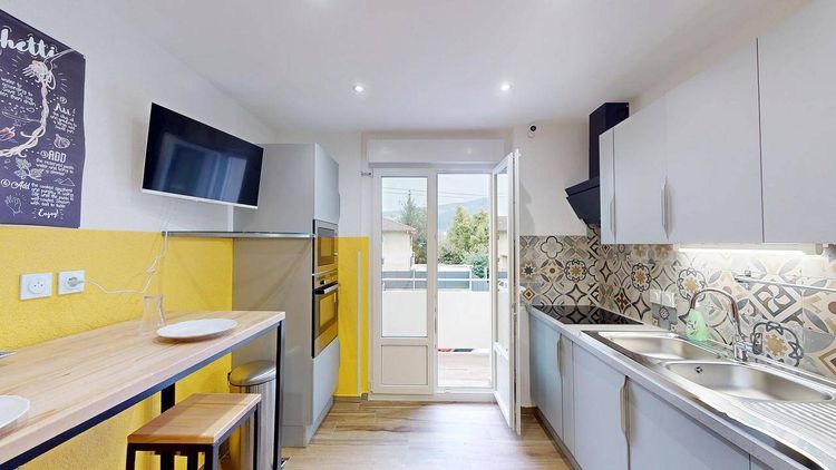 Nous vous présentons cette colocation de 2 chambres de 47m² au 35 Rue de Genève, Ambilly. LES ESPACES COMMUNS Cet appartement situé au premier étage a été fraîchement rénové et offre des prestations modernes dans un secteur calme et bien fréquenté. La cuisine est fonctionnelle et bien équipée : télévision, four, micro-ondes, plaques de cuisson, hotte, évier, réfrigérateur avec compartiment congélateur, de nombreux rangements ainsi que tous les ustensiles nécessaires pour cuisiner dans de bonnes conditions. En complément, une machine à café est à disposition. La salle d’eau est neuve et dispose d’une douche, d’un meuble vasque avec miroir, d’une machine à laver, d’un aspirateur et de rangements pratiques. Les WC sont séparés, ce qui garantit davantage de confort au quotidien. Le séjour, ainsi que la chambre 2, donnent accès à un grand balcon, idéal pour profiter d’un moment de calme à l’extérieur ou pour prendre l’air. Internet est inclus dans le logement. La WI-FI (fibre) est incluse. Une prestation de ménage est également prévue une fois par mois pour l’ensemble du logement, y compris les chambres. LE QUARTIER Le logement bénéficie d’un emplacement central, au cœur d’Ambilly. Il est situé à moins de 10 minutes à pied de la mairie d’Ambilly, et à 16 minutes de celle d’Annemasse (ou moins de 5 minutes en vélo). Côté transports : Les lignes de bus 3, 4 et 6 sont accessibles en moins de 10 minutes à pied Le tramway 17 se trouve à seulement 4 minutes de marche Pour vos courses quotidiennes, plusieurs options sont disponibles à proximité : Un supermarché international à 2 minutes à pied Un Carrefour Express et un Netto à 6 minutes à pied Un Spar à 10 minutes de marche Et pour vos moments de détente, le parc La Fantasia est à moins de 10 minutes à pied. LA CHAMBRE Elle est équipée d'un lit double, d'un bureau, d'un grand placard style dressing et d'une commode de chevet. ----------- Bail individuel à la chambre. Pas de caution solidaire. Chacun est libre de partir quand il veut sans se soucier des autres colocs, dès le moment où il respecte un mois de préavis. Éligible aux APL. REFERENCE DU BIEN : SP4538J Les informations sur les risques auxquels ce bien est exposé sont disponibles sur le site Géorisques : www.georisques.gouv.fr Montant estimé des dépenses annuelles d'énergie pour un usage standard : 901 € par an. Prix moyens des énergies indexés sur l'année 2021 (abonnements compris)