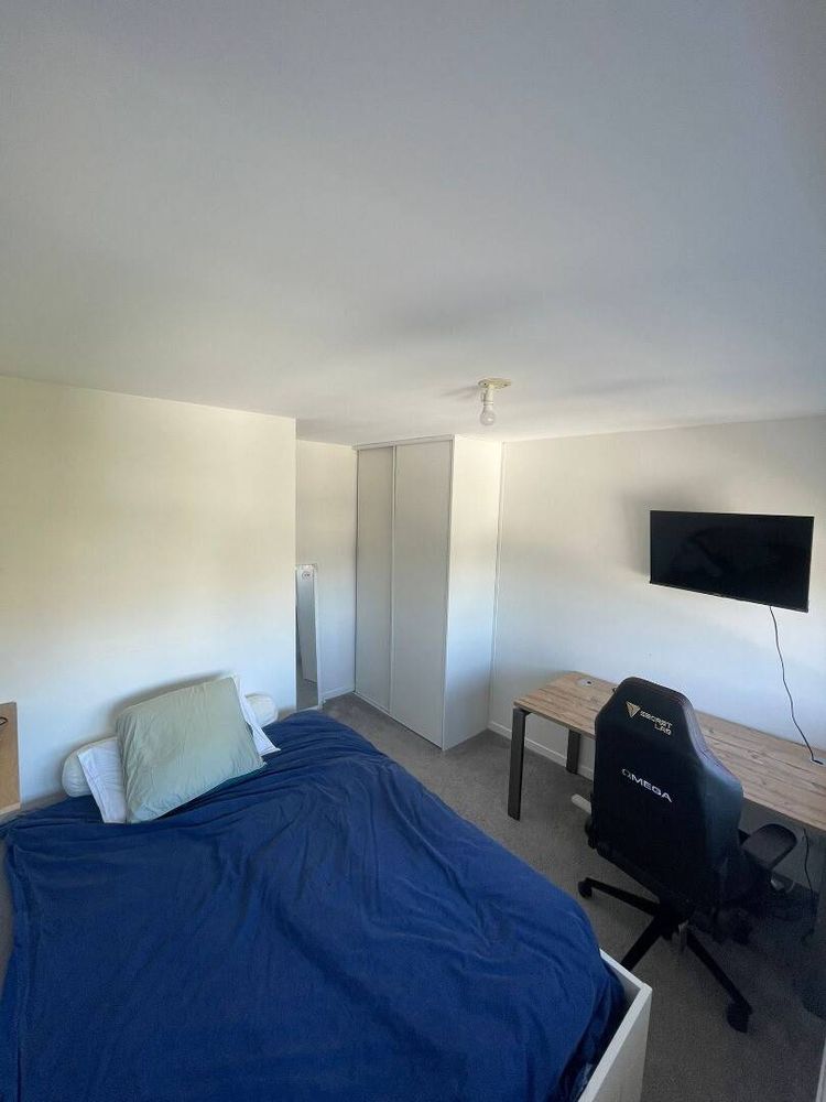 Chambre de 9m2 avec : - Vue sur les Alpes - TV UHD 32" - Bureau 140x80 - Chaise confortable - Lit double 140 - Penderie