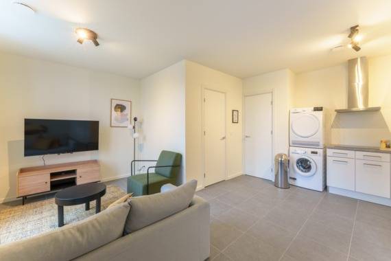 High-end furnished studio near Antwerp Central Station! Colonies offers a beautiful studio of 37 sqm consisting of a living room and a terrace . The studio has a fully equipped kitchen and a spacious bathroom. A comfortable studio: Bright interior 160x200 bed, Equipped kitchen, Telivision, Neat decoration. The kitchen has: Ceramic plates, oven, hood, Dishwasher, Washing machine, Kettle, Complete dishes. The studio is equipped with all the necessary to live: maintenance accessories, operational bathroom, dishes perfectly thought out and anticipated for use from the first day. Rent included charges 1250€ - all charges included within the limit of reasonable consumption: water, internet, building maintenance, insurance, electricity and gas.