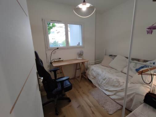 Lit simple de 90 bureau penderie avec sdb séparée par le couloir a partager occasionnellement avec une personne maximum