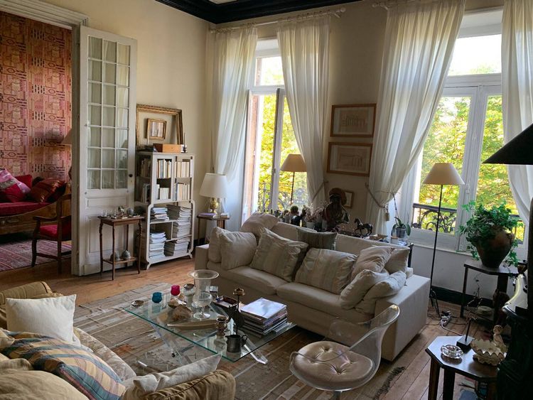 Trés grande chambre, très claire et ensoleillée hauteur sous plafond chaleureuse plein sud Mobilier ancien,(cf.Musée des Arts décoratifs). Très chic joli balcon sur les arbres. vue fleuve et musée Persiennes /Rideaux. parquet ancien tarif: All inclusive