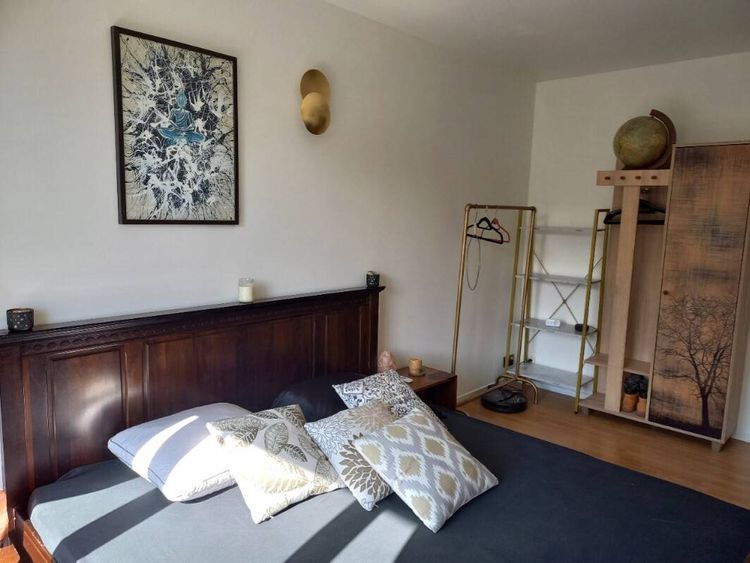 Draps, couettes et oreillers disponibles à la demande. Chambre "Rouge " Meublée, calme et lumineuse, rénovée et décorée avec attention. Accès à un grand balcon via une porte fenêtre, avec volets roulants et rideaux occulants. Pas de vis a vis, le balcon donne sur une voie privée et les jardins. Parquet au sol en très bon état. Lit en bois 160x200, bureau et armoire en bois massif a votre disposition. Linge de lit disponible à la demande.