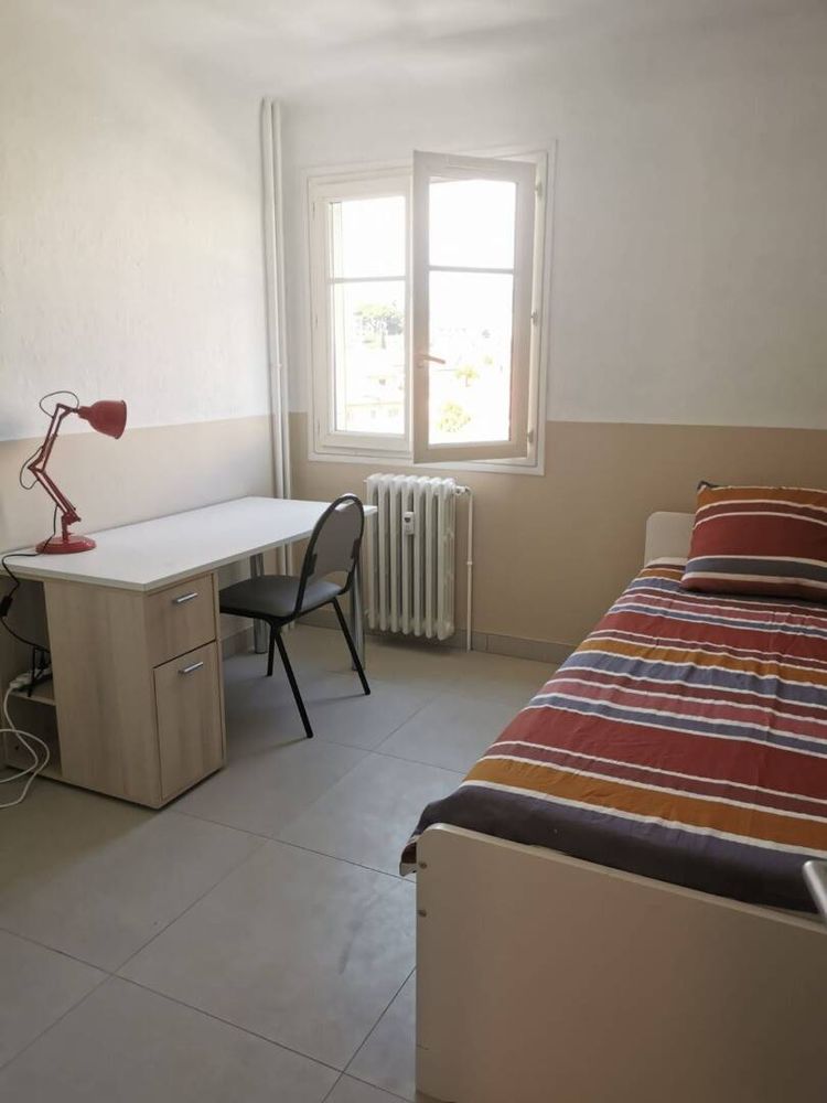 Chambre rénovée. Lit 90x190,bureau avec lampe de bureau,armoire avec penderie, 1 fenetre