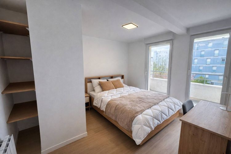Chambre meublée de 11 m², lumineuse, confortable et bien agencée, avec lit double, bureau et espace dressing / rangement. Idéale pour s’installer rapidement dans un cadre pratique et agréable.