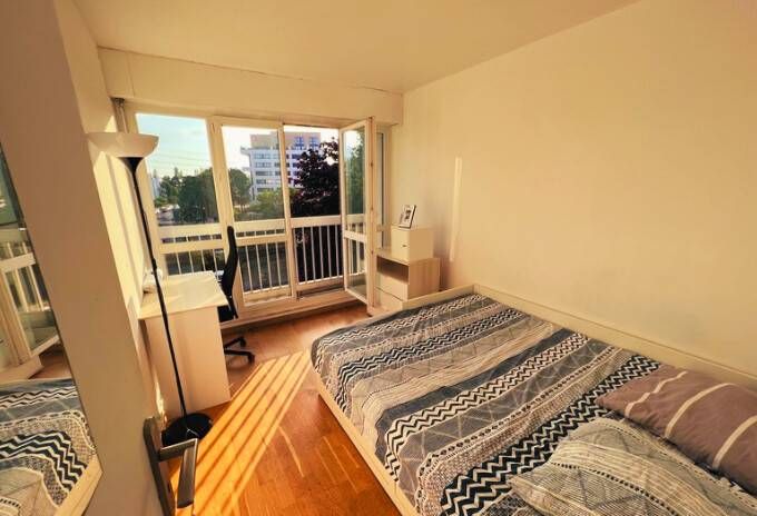 Cette chambre spacieuse est équipée d'un lit simple de 90x190 avec un matelas récent et une paire de literie basique fournie (hors oreiller et couette). Elle dispose également d'un grand dressing pour ranger tous vos vêtements. Un bureau avec une chaise de bureau confortable et un éclairage de bureau sont également fournis pour vous permettre de travailler ou étudier dans les meilleures conditions.