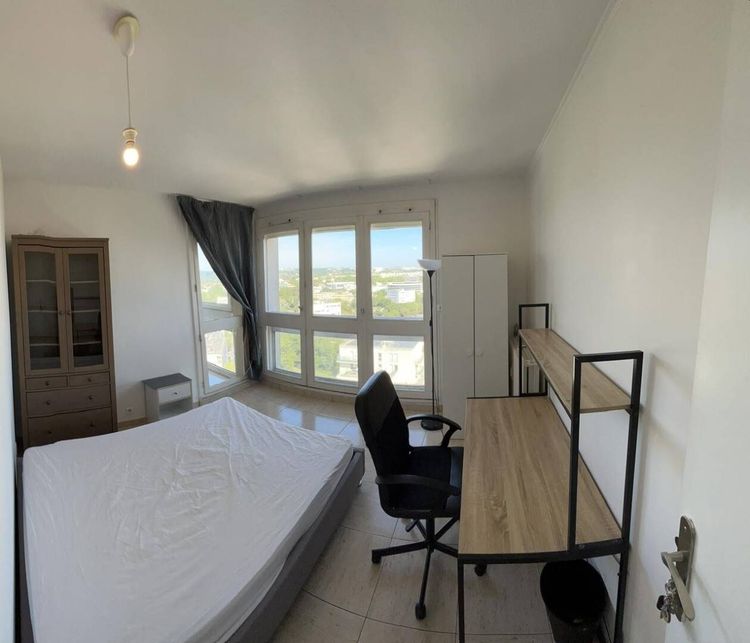 Très belle chambre de 13m² exposition Sud avec un lit double / placard de rangement, bureau et chaise