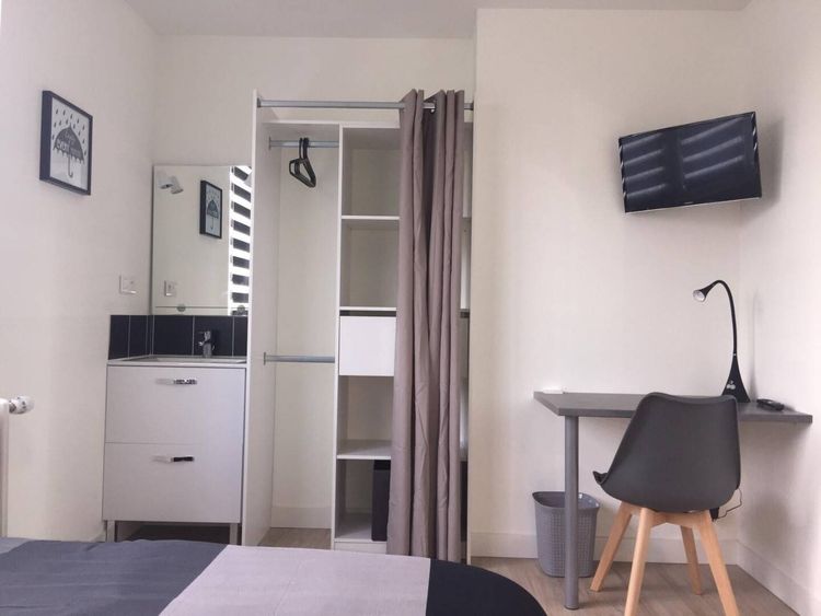 Au 2ème étage côté jardin, 1 lit double 140x190 avec coffre de rangement, 1 matelas haute densité, 2 oreillers mémoire de forme, 1 bureau, 1 chaise, 1 dressing, une tv murale connectée, 1 lavabo + miroir dans la chambre, 1 salle d'eau partagée avec un autre colocataire