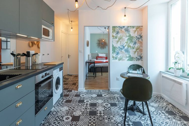 chambre comprend : - Un lit, (literie haut de gamme). 140 cm - Une armoire, - Un bureau, - Une chaise de bureau un bureau. - Une La pièce de vie cuisine : - Une table basse, - Une TV écran plat, - La cuisine entièrement équipée neuve comprend : - Un frigidaire, - Une plaque de cuisson, - Un four, Les couverts, assiettes, tasses, bol, casseroles, cocotte, tout le nécessaire pour cuisinier - La garantie visale ne fonctionne pas pour ce logement la structure de la société n 'est pas autorisée par visale il faut un garant Il faut rajouter la partie edf, ainsi que la partie du prestaire de ménage. Frais de dossier 180 euros. Deux mois de caution.