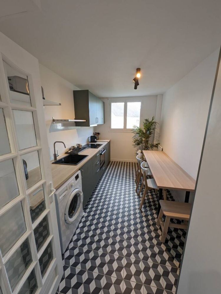 1 Lave-linge, 1 four, 1 frigo, 1 micro-onde, 4 plaque de cuisson, 1 bouilloire, 1 grille-pain, 1 machine à café ainsi que de nombreux rangements.