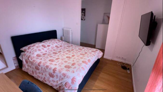 - Double Fenêtre à double vitrage à isolation phonique et thermique. - Literie 2 places aux dimensions 140X200 avec matelas de qualité, afin de vous assurer des nuits paisibles et reposantes. - Nous avons ajouté 2 oreillers, ainsi que le linge de lit adéquat. - Une table de chevet, avec lampe allumage Bluetooth en tapotant avec le doigt ! - Une commode 3 tiroirs pour vos rangements. - Un bureau, avec chaise pour travailler ou se poser. - TV écran plat au mur.