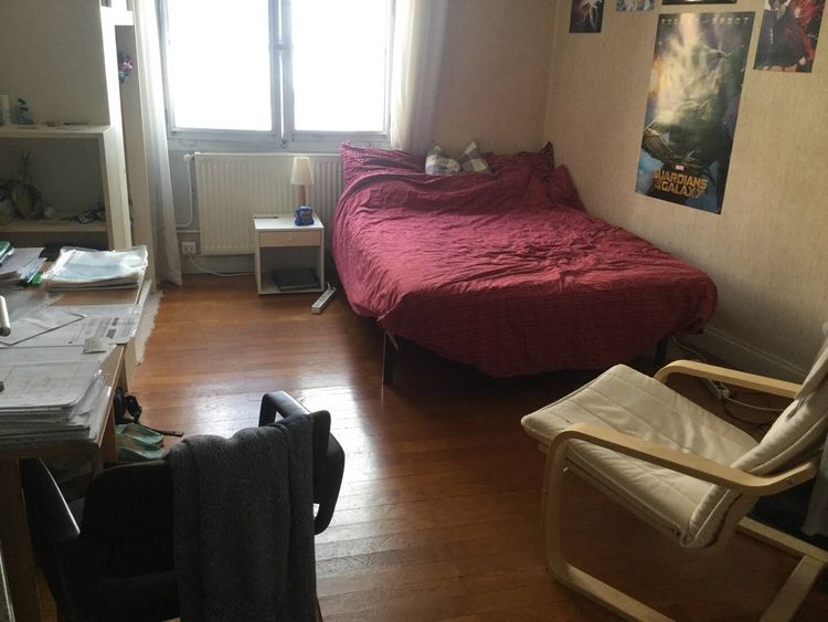Spacieuse chambre meublée. Literie double. Un grand bureau. Avec fauteuil de bureau. Une bibliothèque un fauteuil de repos IKEA. Une grande armoire. Sol parquet bois