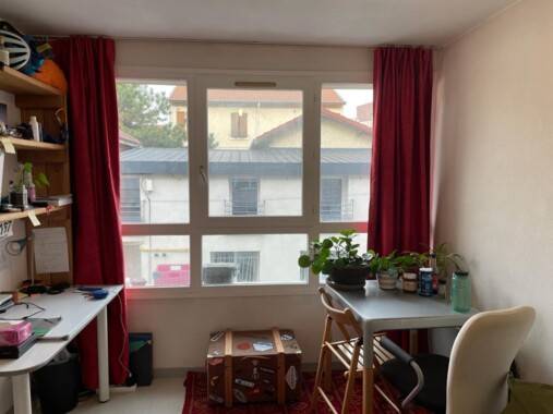 Le quartier est calme – on y trouve commerces, laverie, salle de spectacle. L’arrêt du tram A est au bas de l’immeuble. La gare, GEM et l’INP sont a 10 minutes à pied. Le campus est facilement accessible par piste cyclable.