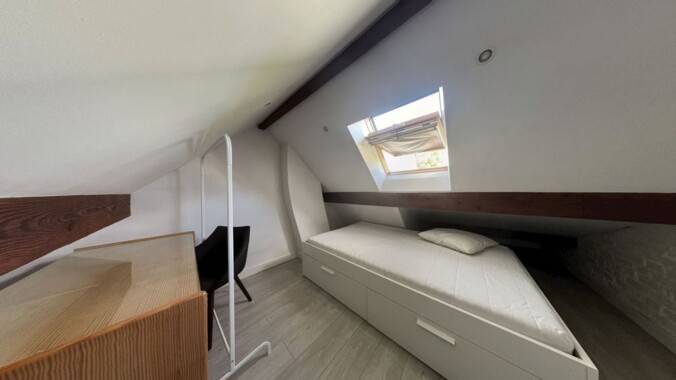 Chambre en colocation – Maison avec jardin – L’Haÿ-les-Roses (94240) Adresse : avenue Jules Gravereaux, 94240 L'Haÿ-les-Roses - Superficie de la maison : 114,97 m² - Chambre privative : 10 m² - Étage : 2ᵉ étage Découvrez cette chambre à louer en colocation dans une charmante maison individuelle située dans un quartier calme et résidentiel de L’Haÿ-les-Roses. La maison offre de beaux volumes et un cadre de vie agréable, idéal pour une colocation conviviale. Composition de la maison : - Sous-sol total : garage, chaufferie et cave - Rez-de-chaussée : entrée, cuisine équipée ouverte sur une salle à manger lumineuse, WC - 1er étage : trois chambres, salle de bains avec WC - Combles aménagés : espace chambre supplémentaire - Extérieur : jardin verdoyant parfait pour se détendre ou partager des repas en plein air - La chambre de 10 m² se situe à l’étage et bénéficie d’une belle luminosité. Les espaces communs sont spacieux, confortables et bien entretenus. Points forts : - Maison rénovée et bien équipée - Colocation dans un cadre familial et chaleureux - Proche des transports, commerces et espaces verts - Jardin et espaces extérieurs à disposition Loyer : 567 € / mois Charges : électricité, chauffage, eau et internet à répartir entre les colocataires.