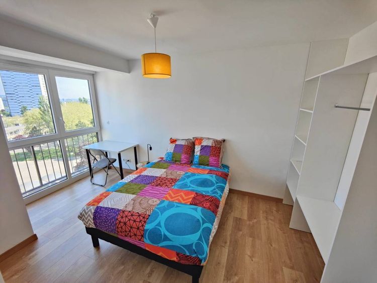 Chambre lumineuse Entièrement équipée Literie neuve + linge de lit (alèse /couette /oreillers) Espace bureau Panderie + rangement