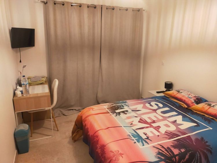 Chambre avec téléviseur ( Amazon Prime ), lit 2 places, bureau, placard, internet...dans maison individuelle neuve, accès à tout le nécessaire ( sdb, toilettes, cuisine, lave linge ).