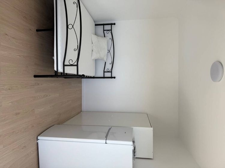 La chambre est entièrement meublée avec soin et dispose de : Un lit double Un dressing spacieux Un bureau avec chaise Une smart TV Un réfrigérateur/congélateur, Une serrure individuelle pour plus d’intimité