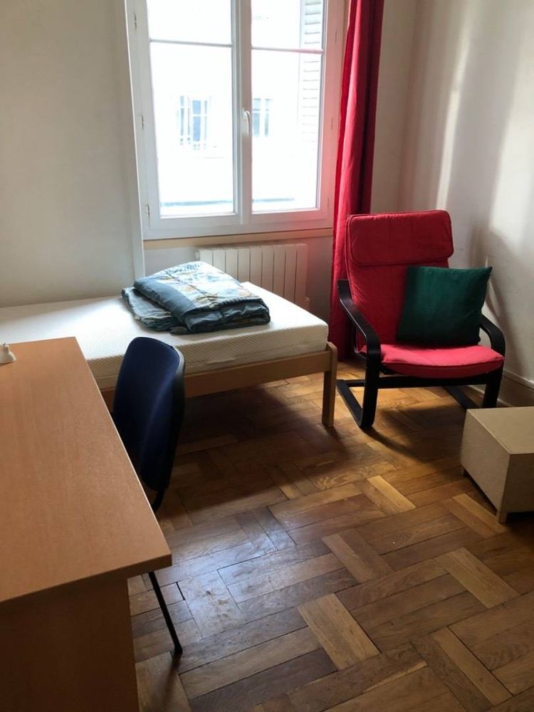 Spacieuse chambre meublé avec balcon. Literie double. Grand bureau avec fauteuil de bureau. Bibliothèque. Grande armoire