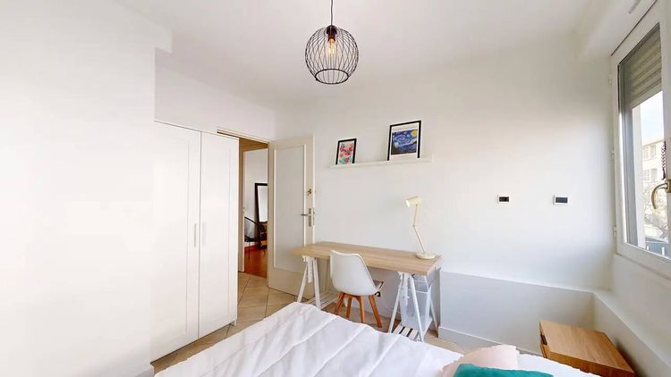🏡 GRAND APPARTEMENT 5 PIÈCES Nous vous proposons en location au 31 Bis rue Feuillat (Lyon), cette colocation de 4 chambres de 82 m² au 31 Bis rue Feuillat. 🛏️ LA CHAMBRE La chambre est équipée d'un bureau, d'un canapé, d'un lit, d'une penderie et d'un placard. 🍳 LES ESPACES COMMUNS Cet appartement de 5 pièces offre un salon équipé d'un canapé, d'un fauteuil, d'une table à manger ainsi que d'une télévision, trois autres chambres, une cuisine et une salle de bains avec baignoire et douche. La cuisine s'accompagne d'un meuble de rangement. Elle comporte aussi un four, un lave-vaisselle, une machine à café, un micro-ondes et une plaque de cuisson. Le chauffage est collectif. Cet appartement est situé au 2e étage d'un immeuble avec ascenseur. 🪴,LES EXTÉRIEURS Le bâtiment est équipé d'un digicode. 🏙️ LE QUARTIER Elle se trouve à 2 km de la gare de Lyon Part-Dieu et du périphérique (sortie 11). L’immeuble est desservi par les lignes de bus 25, C13 et C16 (arrêt Feuillat Campus Pro ), à moins de 100 m. Le tram T3 est à moins de 10min à pied de l’appartement et dessert la gare et l’est de l’agglomération. Une station de vélo en libre-service (Feuillat-Lacassagne) est également disponible à proximité, ainsi que quelques places de parking dans la rue. --------------- Bail individuel à la chambre. Pas de caution solidaire. Chacun est libre de partir quand il veut sans se soucier des autres colocs, dès le moment où il respecte un mois de préavis. Eligible aux APL. REFERENCE DU BIEN : SP8723G