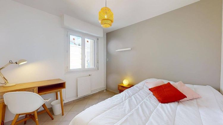 GRAND APPARTEMENT 5 PIÈCES 📍Venez découvrir cette colocation de 4 chambres de 88 m² située au 36 rue du Lieutenant Colonel Girard (Lyon). 💤 LA CHAMBRE La chambre 4 accessible depuis l'entrée, est équipée avec un lit double, d'une table de chevet, un bureau, une chaise, un miroir, et d'un dressing privatif. 🛋LES ESPACES COMMUNS Cette colocation est constituée d'une spacieuse pièce de vie qui comprend un coin salon avec un canapé, une table basse, un fauteuil, des espaces de rangement et une télévision. Elle est également dotée d'une cuisine ouverte entièrement équipée, comprenant un réfrigérateur, un four à micro-ondes, des plaques de cuisson, un four, une hotte, une machine à laver, ainsi que des espaces de rangement, entre autres. Dans cette pièce de vie, vous trouverez également une grande table à manger avec quatre chaises, parfaite pour partager des repas conviviaux entre colocataires. De plus, un avantage supplémentaire est l'accès à un balcon depuis cet espace de vie, offrant ainsi un espace extérieur. Pour vos besoins de salle de bain, vous disposerez d'une salle de bain équipée d'un lavabo et de toilettes avec des espaces de rangement, ainsi qu'une machine à laver pour plus de commodité. En outre, ce logement offre de nombreux espaces de rangement supplémentaires, notamment dans l'entrée, le couloir et la salle de bain. 🏙LE QUARTIER Cette colocation bénéficie d'une excellente localisation : Elle se situe à seulement 3 minutes de marche des arrêts de bus 34 et C3 (Ayasse - Yves Lafarge) ainsi que des lignes 60 et BR60 (Leclerc - Ayasse). De plus, vous pouvez rejoindre à pied en 10 minutes le Tram T1 (Halle Tony Garnier), le Métro B (Jean Jaurès) et la célèbre salle de concert Halle Tony Garnier. Pour faire du shopping et profiter d'un quartier animé, le Centre Commercial Confluence se trouve à seulement 15 minutes en transport en commun. 💡SERVICES ET ÉQUIPEMENTS Chauffage Eau chaude Eau courante Electricité Entretien de l'immeuble Internet Fibre Taxe Ordures Ménagères ———————————————————————— Bail individuel à la chambre. Pas de caution solidaire. Chacun est libre de partir quand il veut sans se soucier des autres colocs, dès le moment où il respecte un mois de préavis. Eligible aux APL. REFERENCE DU BIEN : SP1943E