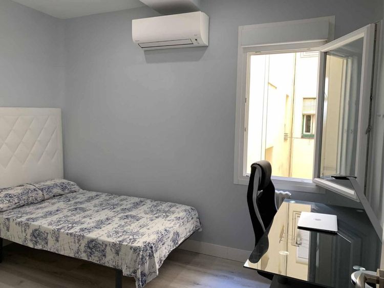 Estupenda habitación exterior. Cuenta con una cama de 105 , armario, mesa y silla de estudio. Cuenta con una ventana que da al exterior y con mucha luz. Esta habitación se encuentra dentro de un piso que se ha reformado recientemente. Cuenta con 6 habitaciones, 3 cuartos de baño, cocina y salón amueblados.