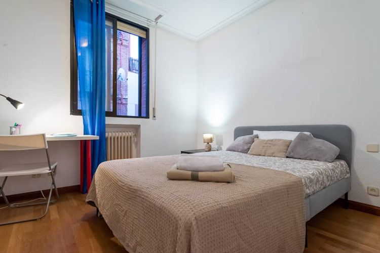 Habitación muy grande interior muy luminosa con cama de matrimonio, armario de 3 puertas. La habitación no incluye sábanas ni almohadas, sólo el cobertor del colchón.