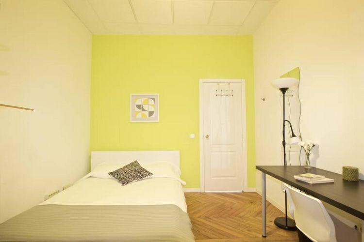 Spacious and bright room in Plaza de las Salesas, double bed, three-leaf wardrobe, mirrors, shoe rack and desk. The room does not include sheets or pillows, only the cover for the mattress.