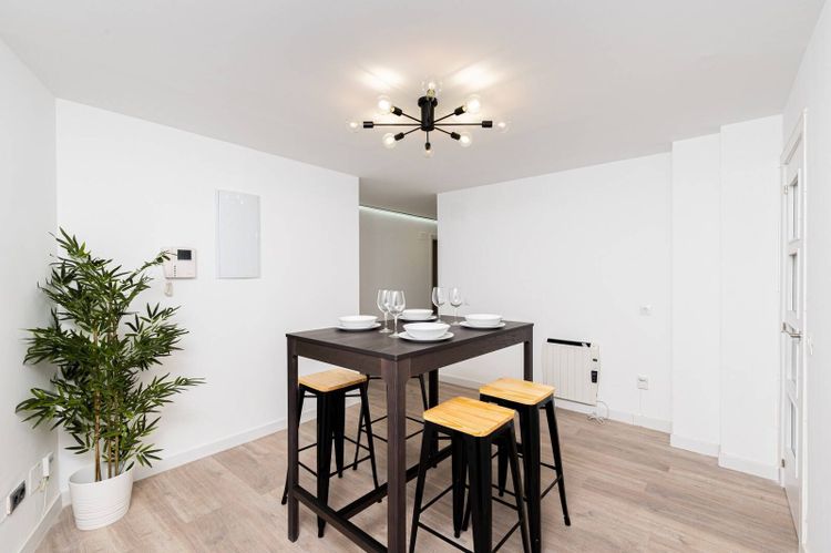 Estudio interior de 35 metros cuadrados con acceso a terraza comunitaria, cocina ,baño que incluye todo el mobiliario básico para hacer tu estancia mas confortable, consta de cama con canapé de 1,35*1,90 , aire acondicionado frio/calor, dos mesitas de noche con cajoneras, armario, mesa de comedor, tv y menaje básico de cocina incluido.