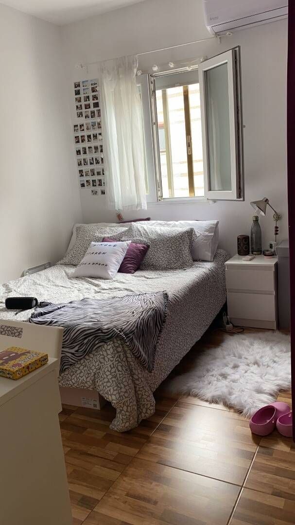 Cama de 135, aire acondicionado, armario empotrado, mesa y silla de estudio, ventana exterior. cómodo y acogedor. provisto de sábanas, toallas y edredón ó colcha.