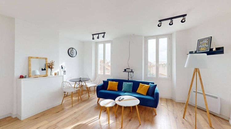 Notre agence vous propose cette colocation de 64 m², situé dans le 4ᵉ arrondissement de Marseille au 49 Rue François Simon. LA CHAMBRE Cette chambre dispose d'un lit double, une table de chevet avec une lampe, un bureau avec une lampe et une chaise ainsi que deux meubles de rangements. LES ESPACES COMMUNS Cette colocation de trois chambres s'ouvre sur une entrée spacieuse et lumineuse accueillant un meuble à chaussures et un porte-manteau. La cuisine est équipée d'un réfrigérateur congélateur, d'un four, de plaques de cuisson avec une hotte, d'un micro-ondes, d'un évier, d'une machine à café et de nombreux rangements. Le salon est aménagé d'un canapé, de tables basses, d'un meuble TV ainsi que d'une table avec quatre chaises, idéal pour partager des repas entre colocataires. La salle de bain dispose d'un meuble vasque avec un miroir, d'une machine à laver, d'une cabine de douche, d'un porte-serviettes radiateur et de WC. L'appartement possède un chauffage individuel fonctionnant à l'électricité. Pour une connexion haut débit, la fibre y est disponible. Il est situé au 3e étage d'un immeuble. LE QUARTIER Les environs proposent deux établissements du supérieur à moins de 10 minutes en voiture : l'Aix-Marseille Université et l'École centrale de Marseille. Niveau transports, il y a 12 lignes de bus, la ligne de métro M1 (Chartreux) ainsi que la station de tramway Longchamp (ligne T2) à moins de 10 minutes à pied. Quatre autoroutes sont accessibles à moins de 4 km. Le cinéma Gyptis vous accueille à moins de 10 minutes à pied pour vos loisirs, tout comme un théâtre, un tennis et un bassin de natation. On trouve également des restaurants, des boulangeries, des commerces, des supermarchés, des supérettes et trois bureaux de poste. Cette colocation est idéale pour les étudiants et / ou jeunes actifs ! Bail individuel à la chambre. Pas de caution solidaire. Chacun est libre de partir quand il veut sans se soucier des autres colocs, dès le moment où il respecte un mois de préavis. Eligible aux APL. REFERENCE DU BIEN : SP1975E