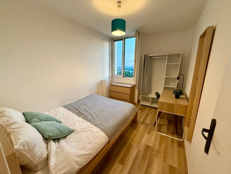 Chambre meublée et tout équipée - Prête à emménager Chambre lumineuse de plus de 11 m2 avec lit double, bureau et commode. Sur besoin je peux rajouter un dressing gratuitement. Décoration moderne et soignée pour une ambiance cosy. Lampe de chevet et stores occultants inclus. Connexion fibre ultra-rapide. Assurance habitation incluse. Poignée de porte avec serrure Vous n'avez plus qu'à poser vos valises !