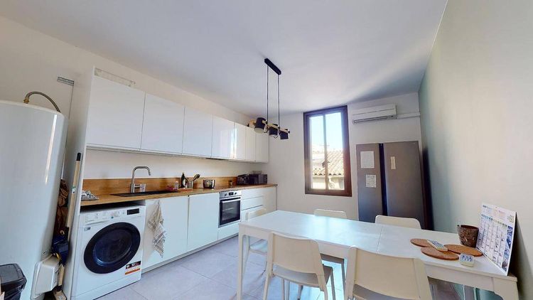 TRÈS GRAND APPARTEMENT 6 PIÈCES Proche du tramway Gare Saint-Roch-République 3, Notre agence vous présente cette colocation de 5 chambres de 120 m² localisée au 9 Rue De La République (Montpellier, 34000). 🛌 LA CHAMBRE Cette chambre est équipée d’un lit double, d’un bureau, d’un chaise et d’un placard de rangement. 🏠 LES ESPACES COMMUNS Les parties communes de cette colocation comportent un grand salon joliment décoré avec deux canapés, et une cuisine séparée. La cuisine est entièrement équipée et intégrée : frigo, congélateur, plaques de cuisson, micro-onde, four, lave vaisselle, machine à laver, rangements, ect. Et une table à manger, idéale pour partager des repas entre colocataire. Deux salles de bain adjacentes situées au fond du couloir, la première avec douche, meuble vasque et WC et la deuxième avec douche, meuble vasque et WC viennent compléter ce logement. 🏙️ LE QUARTIER Cet appartement se trouve à proximité de nombreux transports : La gare TER & TGV Montpellier Saint-Roch se trouve à moins de 3 minutes. L’arrêt de Tram Gare Saint-Roch - République desservi par la Ligne 3 est à moins de 3 minutes L’arrêt de Tram Du Guesclin desservi par la ligne 4 est à moins de 10 minutes L’arrêt de Tram Comédie desservie par la ligne 3 est à moins de 15 minutes Plusieurs lignes de bus circulent également dans un rayon de 300 mètres autour du logement. ———————————————————————— Bail individuel à la chambre. Pas de caution solidaire. Chacun est libre de partir quand il veut sans se soucier des autres colocs, dès le moment où il respecte un mois de préavis. Eligible aux APL. REFERENCE DU BIEN : SP8606T Les informations sur les risques auxquels ce bien est exposé sont disponibles sur le site Géorisques : www.georisques.gouv.fr