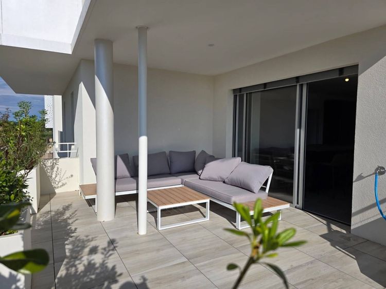 Chambre spacieuse de 12,80 m², équipée d’un lit Queen size, d’un dressing ouvert et d’une télévision. Lumineuse, elle s’ouvre sur la terrasse grâce à une large baie vitrée.