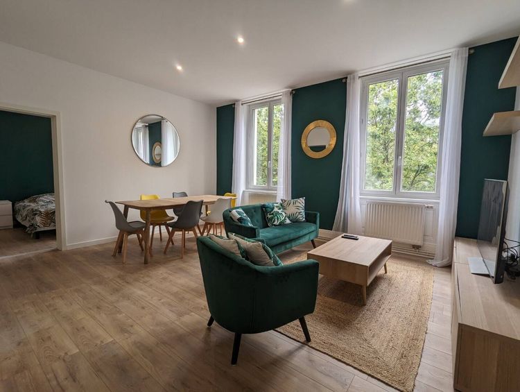 CHAMBRE ÉMERAUDE - STYLE, CONFORT ET FONCTIONNALITÉ Bienvenue dans cette belle chambre émeraude, havre de paix aux multiples atouts. Chaque coin est pensé pour votre bien-être. ESPACE NUIT : Profitez d'un lit de 160x200 avec parure tropicale, idéal pour des nuits paisibles. ESPACE BUREAU : Un espace équipé, prêt pour le travail ou l'étude, incluant rangements, lampe et chaise. ESPACE DÉTENTE : Notre chaise à bascule en rotin vous invite à la relaxation après une journée chargée. ESPACE RANGEMENT : Une grande armoire de 180x200 est à disposition pour un rangement optimal. Conjuguant esthétique et fonctionnalité, cette chambre attend son nouveau locataire.