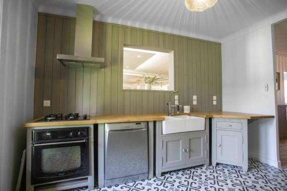 Elle est composée d'espaces communs tels que la cuisine aménagée et équipée (plaques gaz 4 feux, plaque induction 4 feux), 3 réfrigérateurs congélateurs , four pyrolyse, Hotte, machine à laver la vaisselle, 2 micros-onde, belle vaisselle), une grande salle à manger avec coin salon (canapé, lampes, table, bancs, chaises, ...), une buanderie avec 2 MALL et 2 Sèche-linge, tancarvilles, fer et table à repasser, aspirateur , 2 WC au rdc et 2 à l'étage (garçons-filles), WIFI, VMC, double vitrage.