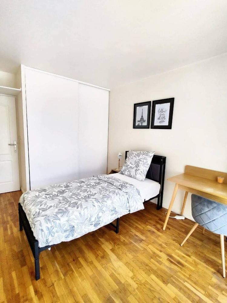 Chambre lumineuse et entièrement meublée Lit avec literie neuve , bureau avec lampe et chaise confortable, Grand placard avec étagères