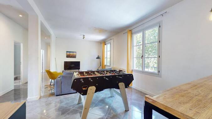 Notre agence vous présente cette colocation 6 chambres de 146 m² située au 9 Rue De L'intendant Le Nain (Poitiers, 86000). 🛏 LA CHAMBRE Cette chambre n'a pas pu être photographiée au cours de la visite virtuelle, mais elle est similaire aux autres et dispose d'un lit double, d'une table de chevet, d'un bureau avec une chaise et de nombreux rangements. 🏠 LES ESPACES COMMUNS L'appartement offre un grand séjour avec cuisine ouverte. Celui-ci dispose d'un canapé, d'un fauteuil, d'une table-basse, d'un meuble TV avec TV, d'un babyfoot⚽️, de rangements et d'une grande table avec des tabourets, idéal pour partager des repas entre colocataires. La cuisine est équipée d'un four, de deux réfrigérateurs dont un avec congélateur, de plaques de cuisson, d'un lave-vaisselle, de deux micro-ondes, de tous les ustensiles et la vaisselle nécessaire et de nombreux rangements. La première salle d'eau comprend une double vasque, une cabine de douche, des rangements et des toilettes. La seconde comprend une double vasque, une cabine de douche, un lave-linge et des rangements. Des toilettes séparées complètent ce bien. L'appartement bénéficie d'un chauffage individuel alimenté au gaz. Il se situe au 2e étage d'un immeuble. 📍 LE QUARTIER L'appartement est idéalement situé à proximité du centre de Poitiers, à deux pas des commerces et des espaces de loisirs. Côté transports, de nombreux bus desservent la zone (lignes A, 2A, 13, 1E, 21, 35...) et permettent de rejoindre le centre-ville en moins de 10 minutes. La gare de Poitiers est accessible en une quinzaine de minutes de marche ou en moins de 10 minutes de transports. Les universités de Poitiers sont facilement accessibles : IAE de Poitiers à 10 minutes de marche Campus de l'université de Poitiers à 25 minutes de transports Colocation "prête à vivre" idéale étudiant ou jeune actif. Bail individuel à la chambre. Pas de caution solidaire. Chacun est libre de partir quand il veut sans se soucier des autres colocs, dès le moment où il respecte un mois de préavis. Éligible aux APL. REFERENCE DU BIEN : SP6662F