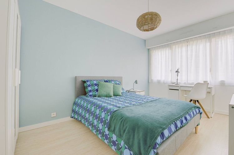 Chambre donnant sur parc arboré, calme et lumineuse. Parfaite pour étudier ou télétravailler.