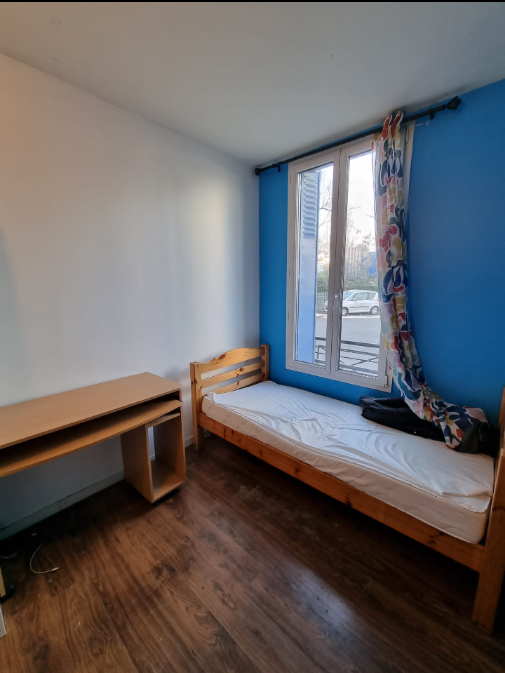 Grande chambre avec bureau, armoire ,rideau Colocation avec jardin sur toute la maison avec plusieurs cuisines et sdb partagées Wifi Ambiance et calme Près du tramway et rer à et métro 1 et proches commerces