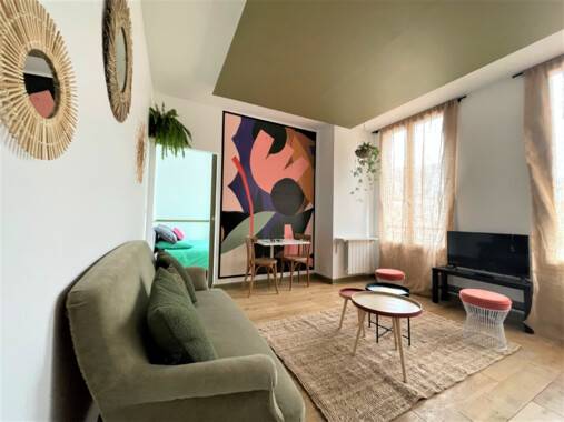 L'appartement est entièrement meublé et se compose d'une entrée, d'une pièce de vie lumineuse avec cuisine ouverte entièrement équipée, d'une chambre confortable et d'une salle de douches avec WC. Il a été rénové récemment avec une attention particulière portée à la décoration et au confort, offrant ainsi un cadre de vie de qualité.