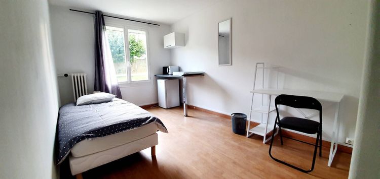 Cette chambre est située dans un appartement avec un arrêt de bus juste devant le bâtiment. Elle est refaite à neuf. La chambre est équipée d'un lit confortable, de grands placards, de chevet, bureau, chaise, réfrigérateur, micro-ondes, plaque chauffante à Induction, casserole et poêle à induction, hotte aspirante, placard de cuisine, vaisselle individuelle. Accès internet WiFi, planche à repasser, fer à repasser. Pour votre sécurité la chambre est équipée de détecteur incendie et d'extincteur.