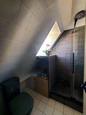 Chambre agreable , côte sud, 2éme étage ,2 velux , lit simple , placard, bureau, meuble bibliothéque ,table chevet, lampes