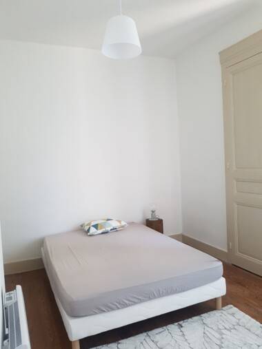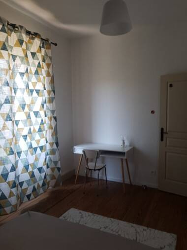 Grande chambre à l'écart, très tranquille, vitrage double, volet, chambre équipée et meublée, lit double avec matelas de 190x140, bureau, penderie, tapis, chaise, luminaires etc....