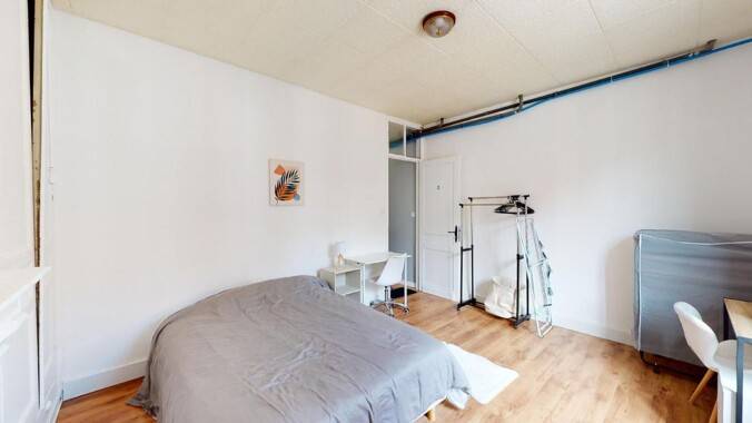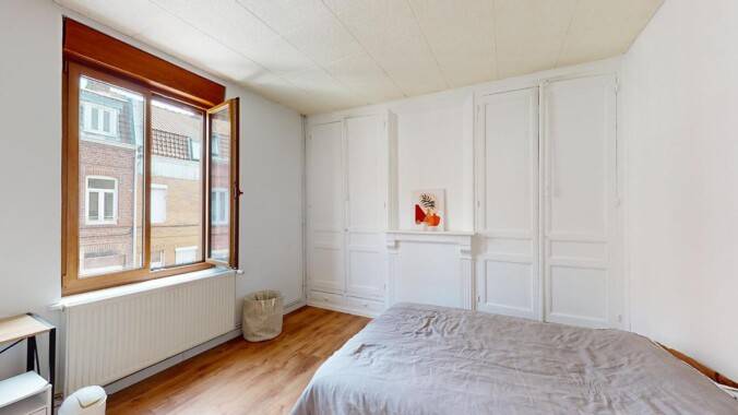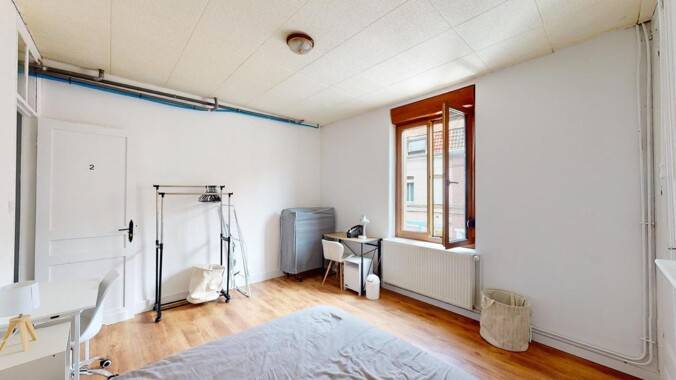Venez découvrir au 130 Rue De Denain dans la commune de Roubaix (59100) cette colocation de 4 chambres de 105 m². 🛌 LA CHAMBRE La chambre 4 dispose d’un lit double, d'un meuble dressing, d’une table de chevet accompagnée d’une lampe de chevet et d’un bureau accompagné d’une chaise. Cette chambre dispose d'un accès commun avec la chambre 3 à une salle de bain équipée d'un meuble vasque, d'une cabine de douche et d'un WC. 🏠 LES ESPACES COMMUNS Cette maison comporte trois niveaux, de deux salles de bain et quatre chambres. Au rez-de-chaussée se trouve la pièce de vie avec un espace salon et salle à manger (muni d’un canapé, d’une table basse, d’un meuble TV, d’une TV, d’une table, de chaises), une cuisine très bien équipée (Four, micro-ondes, plaques de cuisson, hotte, frigidaire, lave-vaisselle, etc.), et d’une salle de bain commune (équipée d’une douche, d’une machine à laver, et d’un double meuble vasque). Au 1ᵉʳ étage se trouve deux chambres et au 2ᵉ étage se trouve deux autres chambres, ainsi qu’une salle de bain accessible uniquement par ces chambres 3 et 4. Cette salle de bain est à l’usage exclusif des locataires des chambres 3, 4 et se munit d’un meuble vasque, d’un WC, d’un sèche-serviette, et d’une cabine de douche. Les chambres sont toutes équipées d’un lit double, d’un meuble dressing, d’une table de chevet accompagnée d’une lampe de chevet et d’un bureau accompagné d’une chaise. 🌳 LES EXTÉRIEURS Une cave est associée à cette maison. 🏙️ LE QUARTIER La localisation de ce bien est idéale, proche du centre-ville et du centre hospitalier et de la maternité de Roubaix. Vous serez situé à seulement 15 minutes à pied du centre-ville, et disposerez de nombreuses commodités à proximité, dont un magasin Lidl à 100 mètres. ⚡️ Inclus dans les charges : Entretien de la chaudière Internet Fibre Chauffage Eau chaude Gaz Electricité Taxe Ordures Ménagères Eau courante —————————————————————— Bail individuel à la chambre. Pas de caution solidaire. Chacun est libre de partir quand il veut sans se soucier des autres colocs, dès le moment où il respecte un mois de préavis. Eligible aux APL. REFERENCE DU BIEN : SP0282W