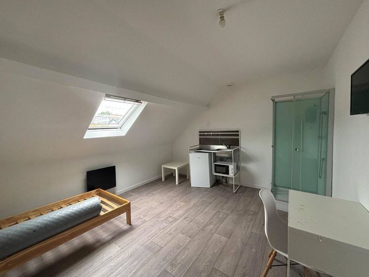 Chambre meublée Lit 1 place Bureau Armoire de rangement Coin cuisine Douche