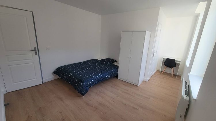 - Chambre 4 : 1er, 12,75m2 Caractéristiques : - Maison refaite à neuf en début 2024, 113,49m² sur 3 niveaux - 6 chambres neuves & meublées de 12,7 à 15,9m² : 2 chambres par étage - Salle de bain privée avec sèche serviette - Espace commune : cuisine équipée, TV, canapé, table 6 personnes, lave-linge - Places de stationnement devant la maison dispo et gratuits - 1 cave pour stockage - Ménage sur la partie commune inclus dans les charges - Eligible aux APL Chambres - Toutes les chambres disposent du mobilier suivant : lit double (140x200, avec couette de 200x200 et oreiller), armoire, bureau et chaise - Salle de bain privée est composée comme suite : cabine douche, WC, lavabo, miroir et sèche serviette Les charges incluent : - Internet Fibre / Chauffage / Electricité / Eau / Ménage de la partie commune / TOM