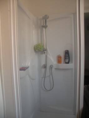 La chambre entièrement meublée est équipée de fenêtres double vitrage et dispose d'une salle de douche privative avec cabine de douche, vasque et wc.