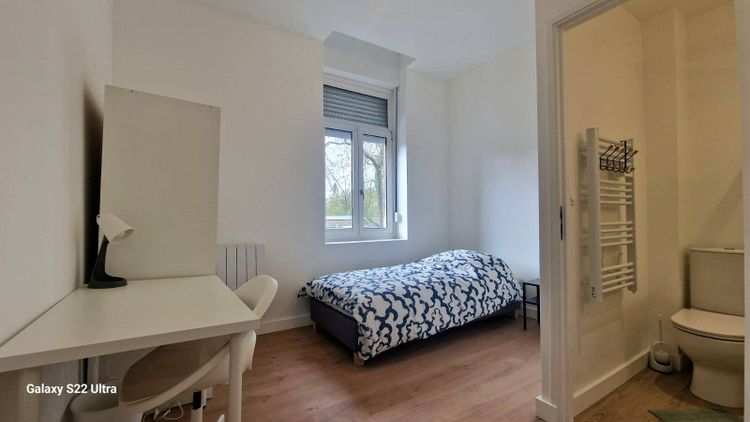 Chambre au RDC entièrement rénovée et équipée avec sa salle d'eau privative.