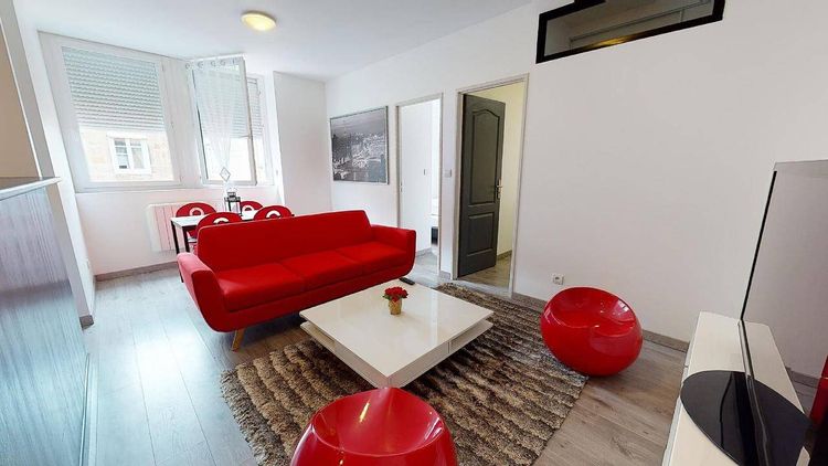 À quelques minutes de l'arrêt de tramway TARENTAIZE (lignes M3 et S7), au 40 Rue Élisée Reclus (Saint-Étienne, 42000), venez découvrir cet appartement de 3 pièces de 52 m². 🏠 L'APPARTEMENT Ce T3 comporte donc 2 chambres : la première équipée d’un lit double et d’un grand placard de rangement et la deuxième avec lit double, bureau, chaise et grand placard de rangement. Les parties communes quant à elles se composent d’un salon lumineux aménagé avec un canapé, une table basse, une TV, une table à manger, etc. et une cuisine ouverte. La cuisine fonctionnelle et moderne est équipée d’un four, d’un micro-ondes, de plaques de cuisson, d’une machine à café, de rangements, etc. Une salle de bain avec douche, meuble vasque et machine à laver ainsi que des WC séparés viennent compléter ce logement. 🌳 LES EXTÉRIEURS Une cave offre à cet appartement une solution de rangement additionnel. 🏙️ LE QUARTIER Cet appartement est idéalement situé à proximité immédiate du centre ville de Saint Etienne dans un quartier dynamique et commerçant. L’arrêt de Tram Hotel de Ville desservi par la ligne T1 se trouve à moins de 5 minutes à pied. De plus plusieurs lignes de bus dont les lignes 16, M2, M3 et M5 circulent dans un rayon de 300 mètres autour du logement. ———————————————————————— Éligible aux APL. REFERENCE DU BIEN : SP2078R