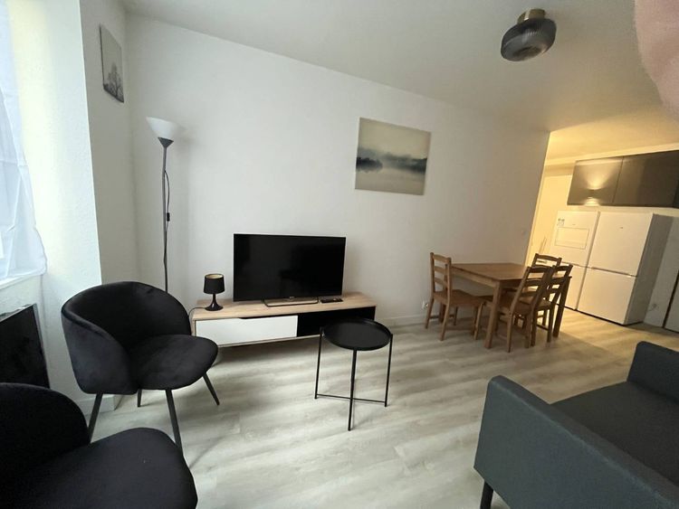 Donne sur la place de l'Hotel de Ville, au calme lit double literie neuve, fibre, prise RJ45 pour du très haut débit, bureau, armoire.