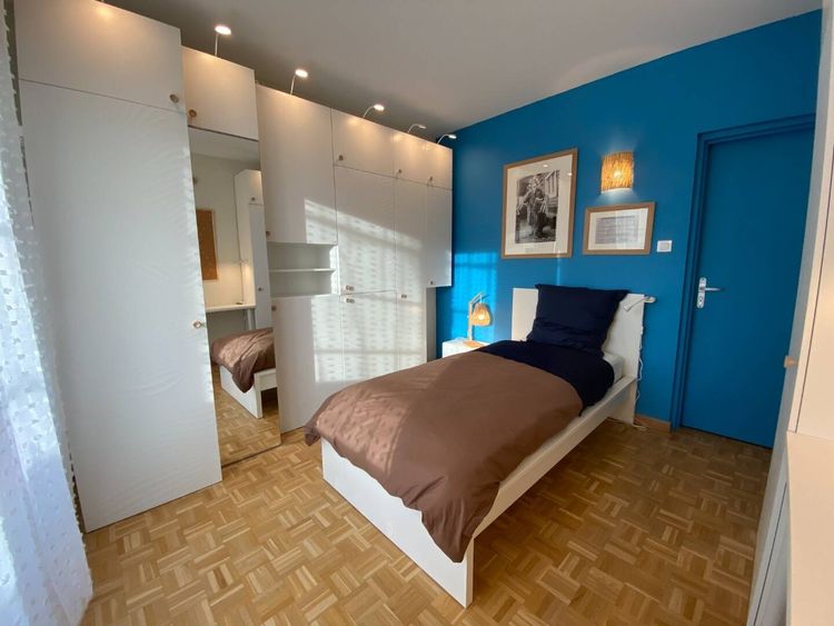 À louer chambre de 11.42 m2 entièrement meublée avec lit simple, nombreux rangements, porte à digicode, double vitrage.